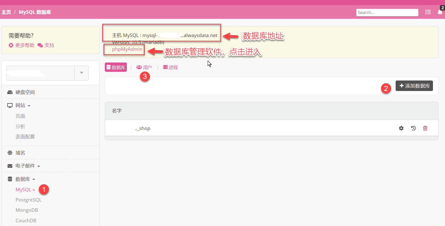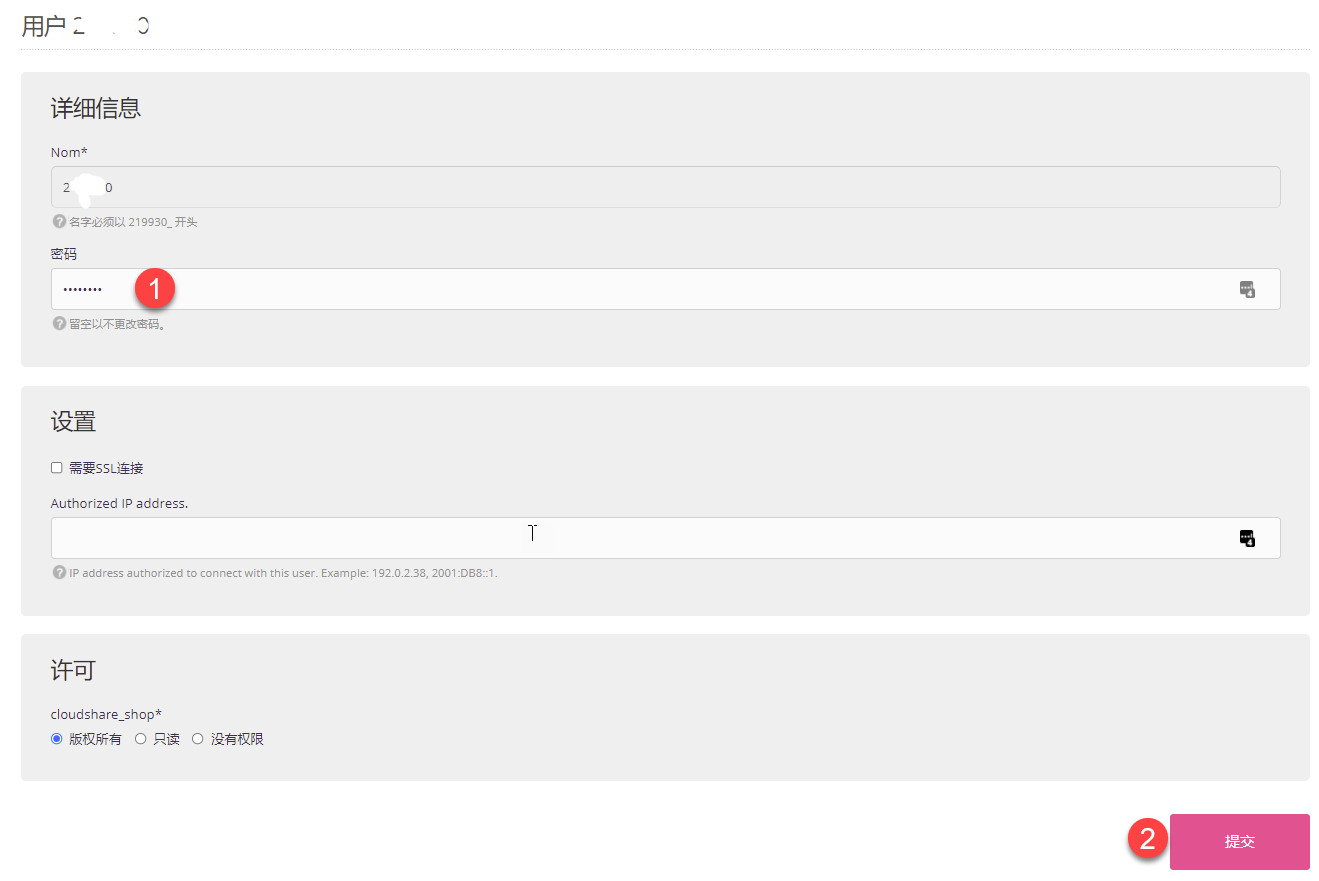 设置数据库用户密码(数据库用户名太长,alwaysdata自动改设为数字)