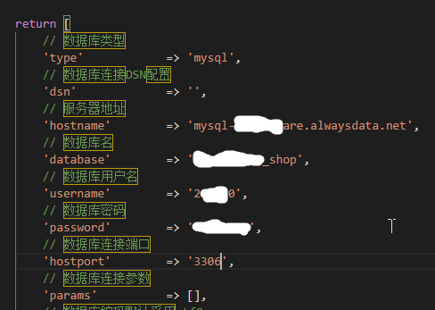 在application/database.php文件中,填写数据库信息的文件(请勿用windows记事本,文本文档编辑代码文件,推荐VScode)